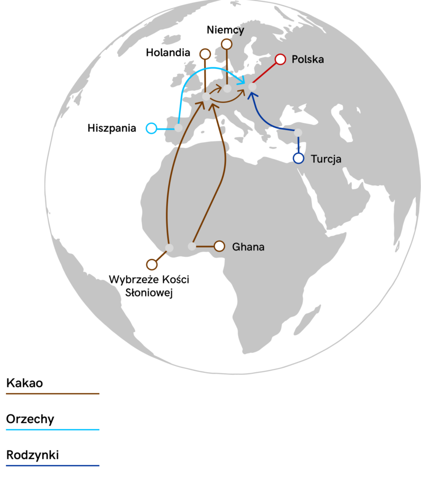 Jesteśmy dumni z naszych zaufanych plantacji i dostawców z Wybrzeża Kości Słoniowej i Ghany, którzy są sercem naszej działalności. Współpracujemy tylko z najlepszymi producentami kakaowca, miazgi kakaowej, orzechów i bakalii, aby zapewnić naszym klientom produkty najwyższej jakości, które stanowią podstawę naszych wyrobów czekoladowych.